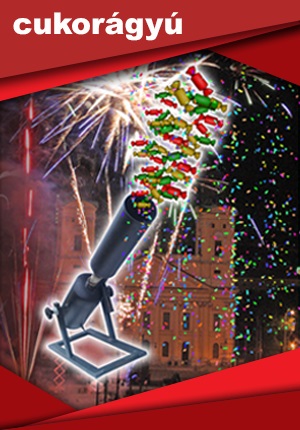 Ez egy sűrített-levegővel működő cukor-csokiágyú, mely csokiesőt varázsol a gyerekek feje fölé. Lövésenként kb. 1,5 kg, darabonként csomagolt, MINŐSÉGI csoki, ill. cukordarabkák repülnek a levegőbe a gyerekek és felnőttek örömére. Ajánlott: Céges rendezvényekre, falunapokra, gyermek rendezvényekre, mikulás, ill. karácsonyi partykra (szaloncukor) Bérleti díj: 8.000 Ft/lövés